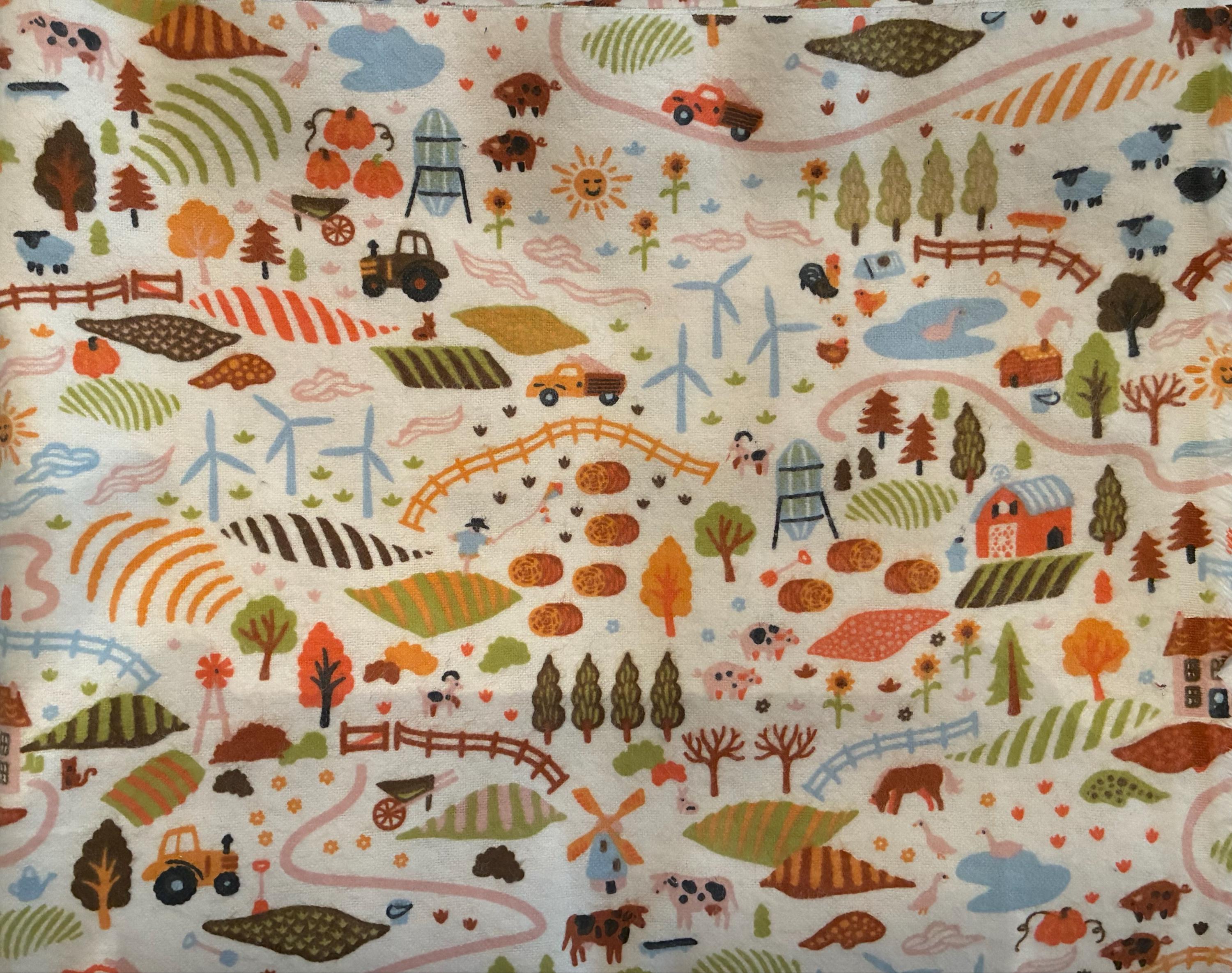 Flannel Fabric - Farm Land - By the yard - 100% Cotton Flannel