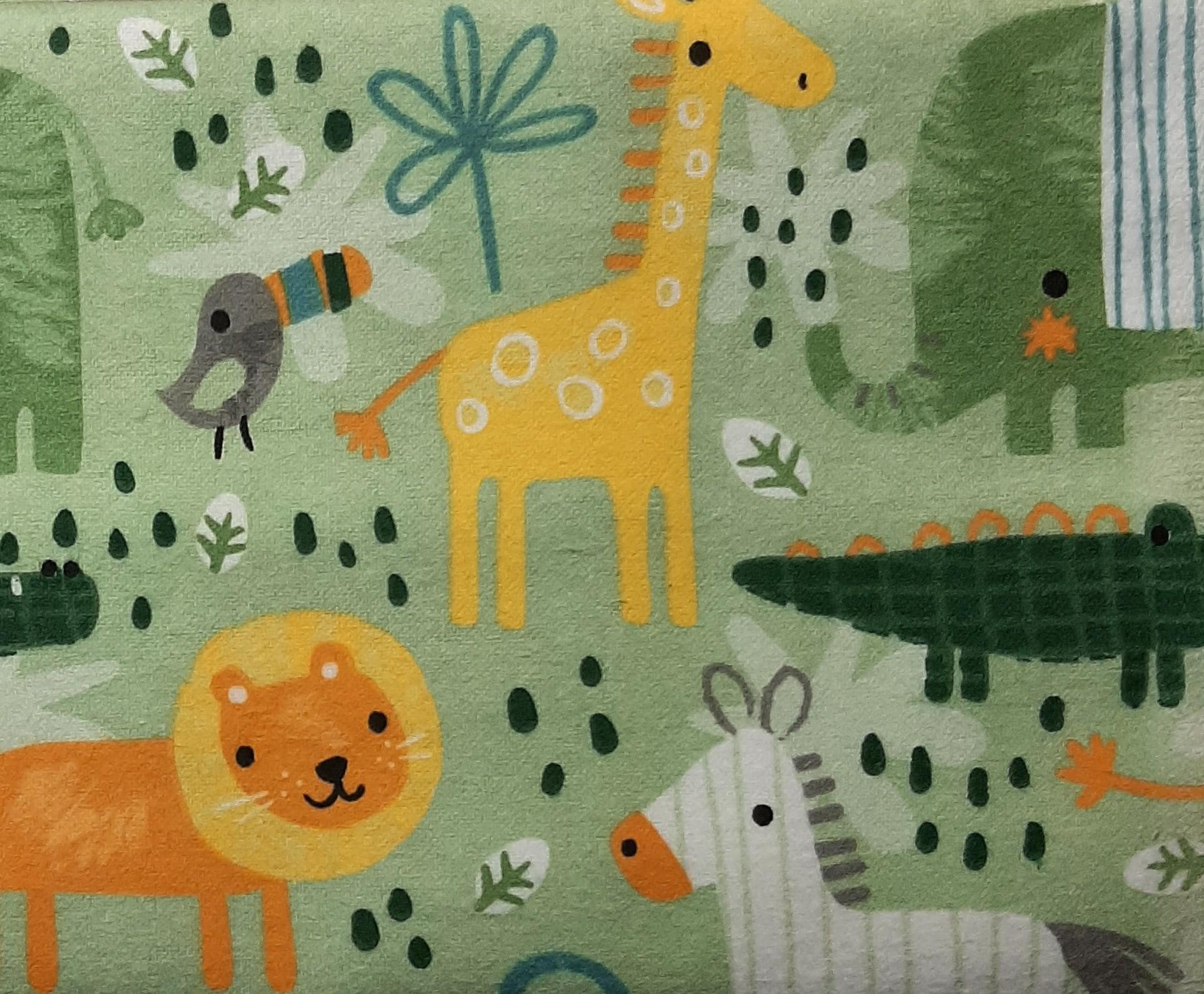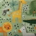 Flannel Fabric - Sweet Jungle Animals Green - By the yard - 100% Cotton Flannel