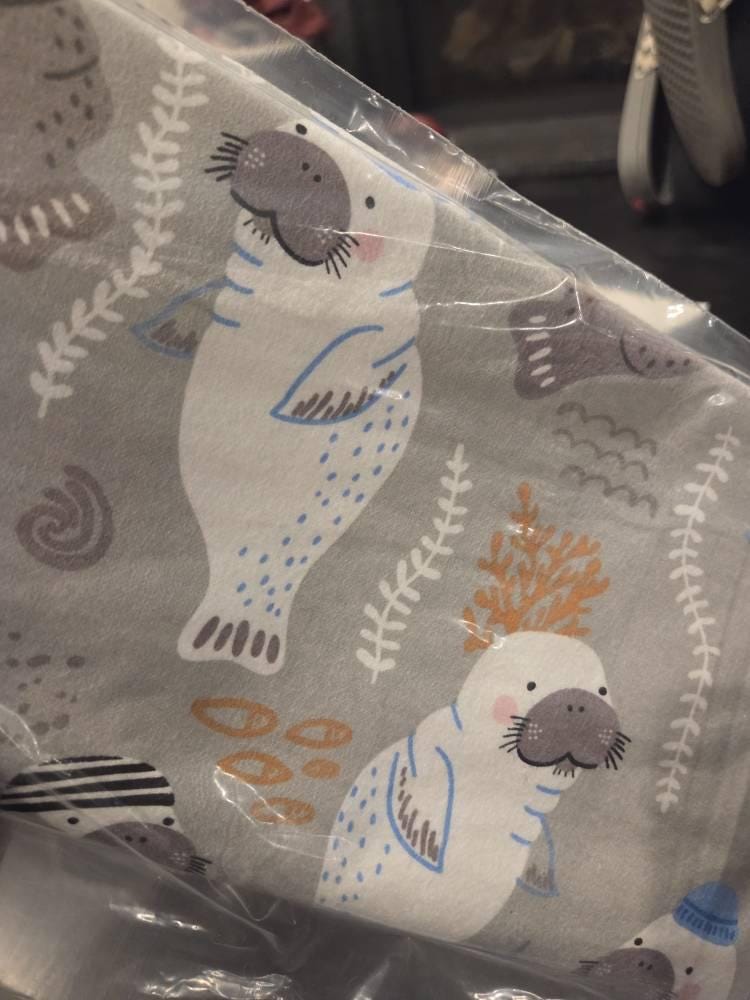 Flannel Fabric - Nautical Manatees on Gray - By the yard - 100% Cotton Flannel